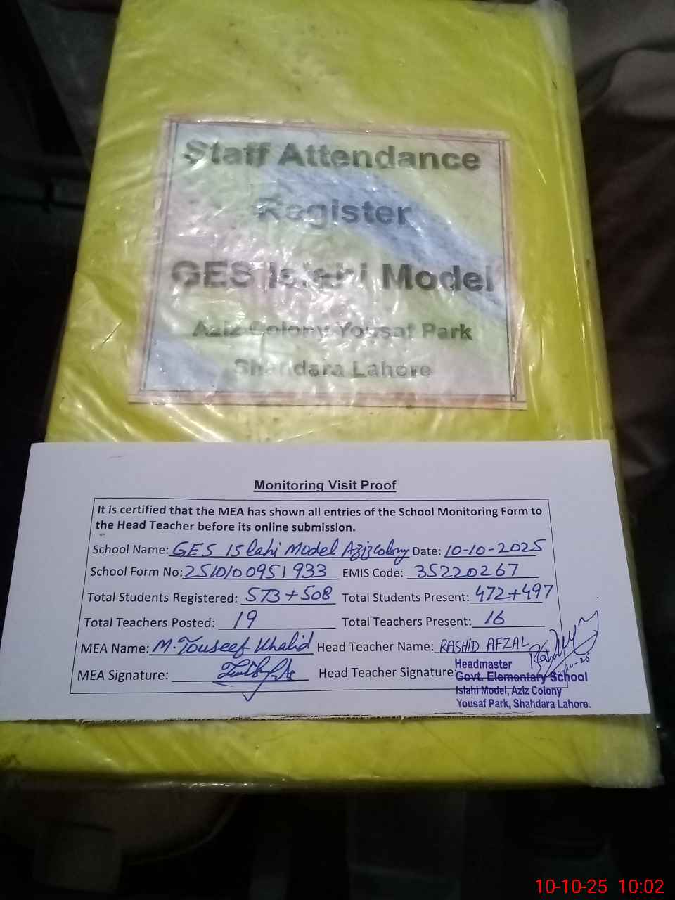 | EMIS Code: 35220267 | Name of School: GES ISLAHI MODEL AZIZ COLONY YOUSAF PARK SHAHDARA | |||