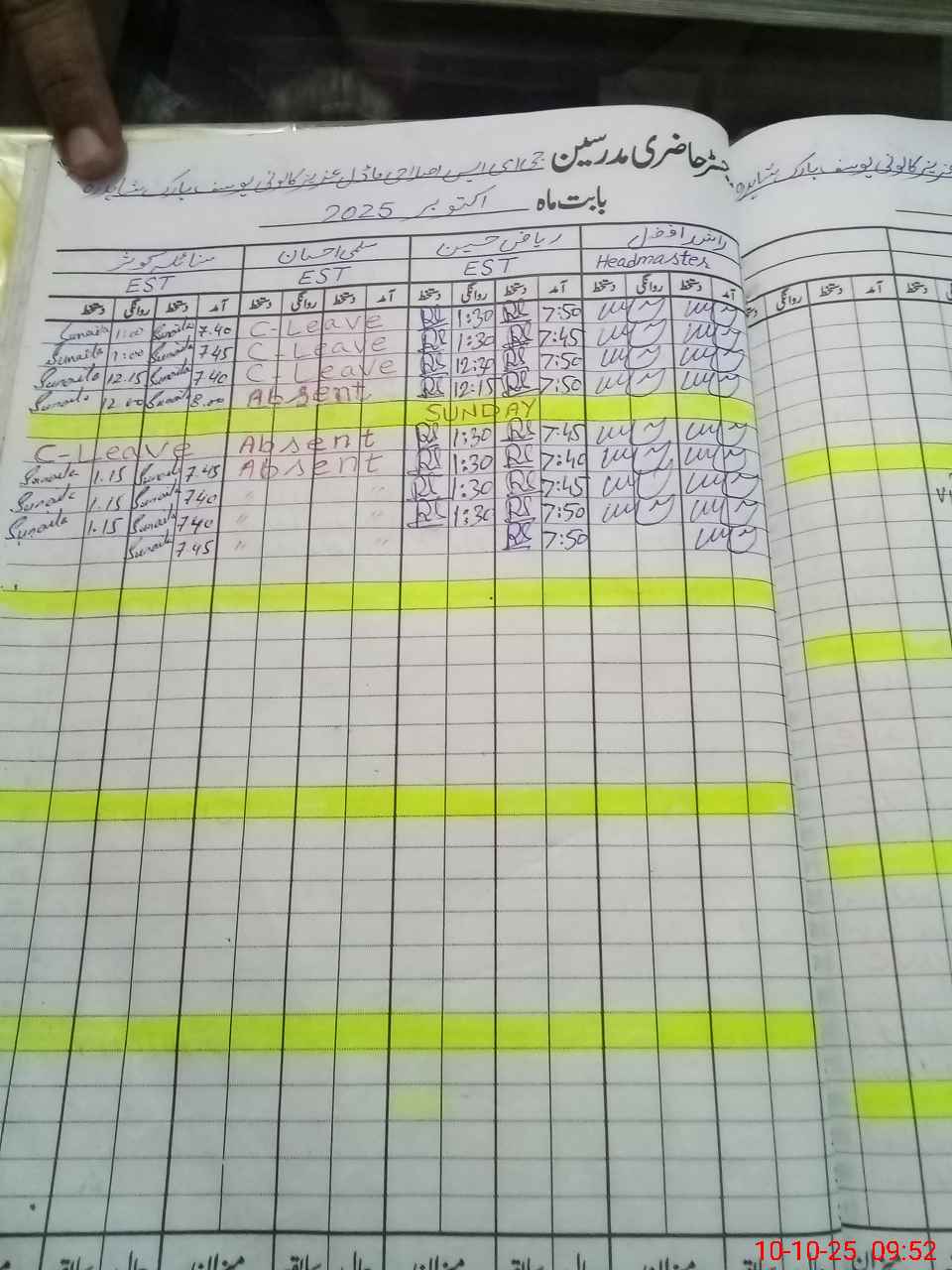 | CNIC | Full Name | Designation | R/C | Absence During Last Calender Month |