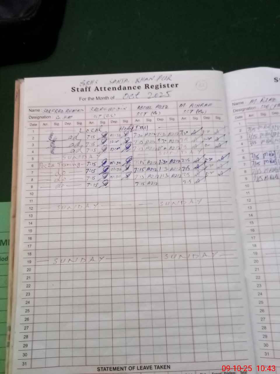 | 31**** | Sa**** Ah**** | Sr. Headmaster | Regular | 0 | 0 | 0 | 0 | 0 | 0 | 0 | 0 | 0 | On Training |