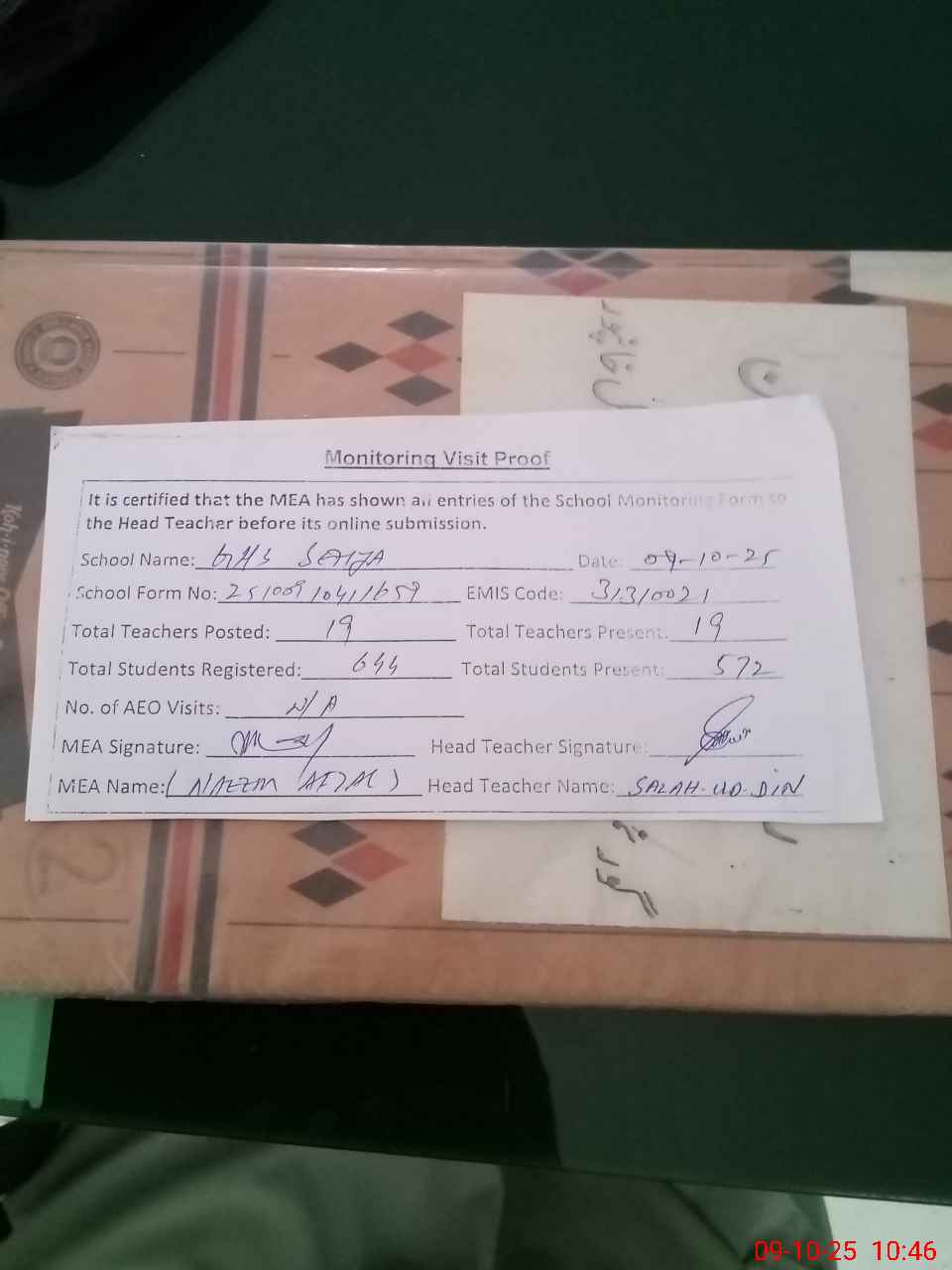 | Monitoring Date: 09-10-2025 | Start Time: 09-10-2025 09:33 AM | End Time: 09-10-2025 10:46 AM | Name of MEA: Na**** Af**** | |