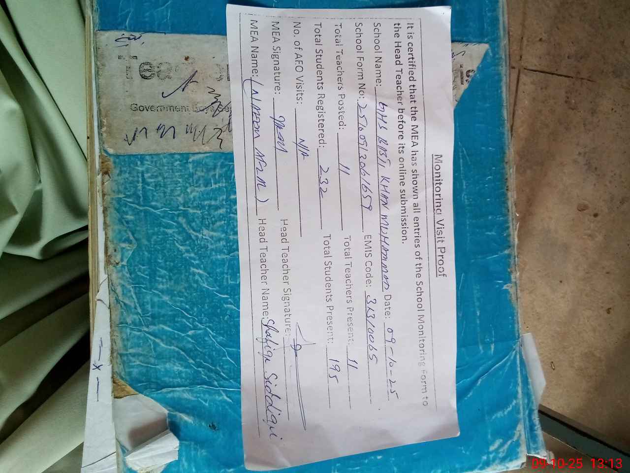 | Certified that this School was Inspected by the Undersigned MEA/DMO Today and the Information Stated Above is as Per Record. | |||||