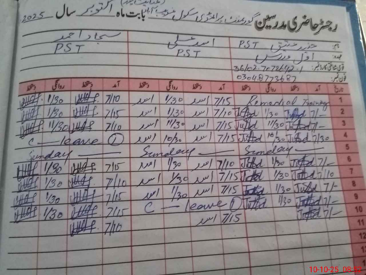 | Name: Ju**** At**** Designation: (School Headmaster's/Headmistress's) PST Phone/Cell Number: 03**** |
