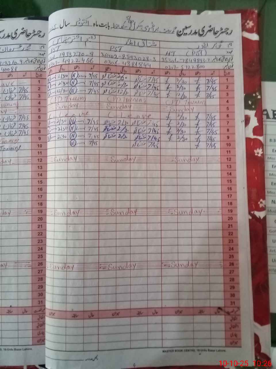 | CNIC | Full Name | Designation | R/C | Absence During Last Calender Month |