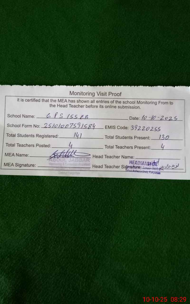 | EMIS Code: 39220255 | Name of School: GPS 155 EB | |||