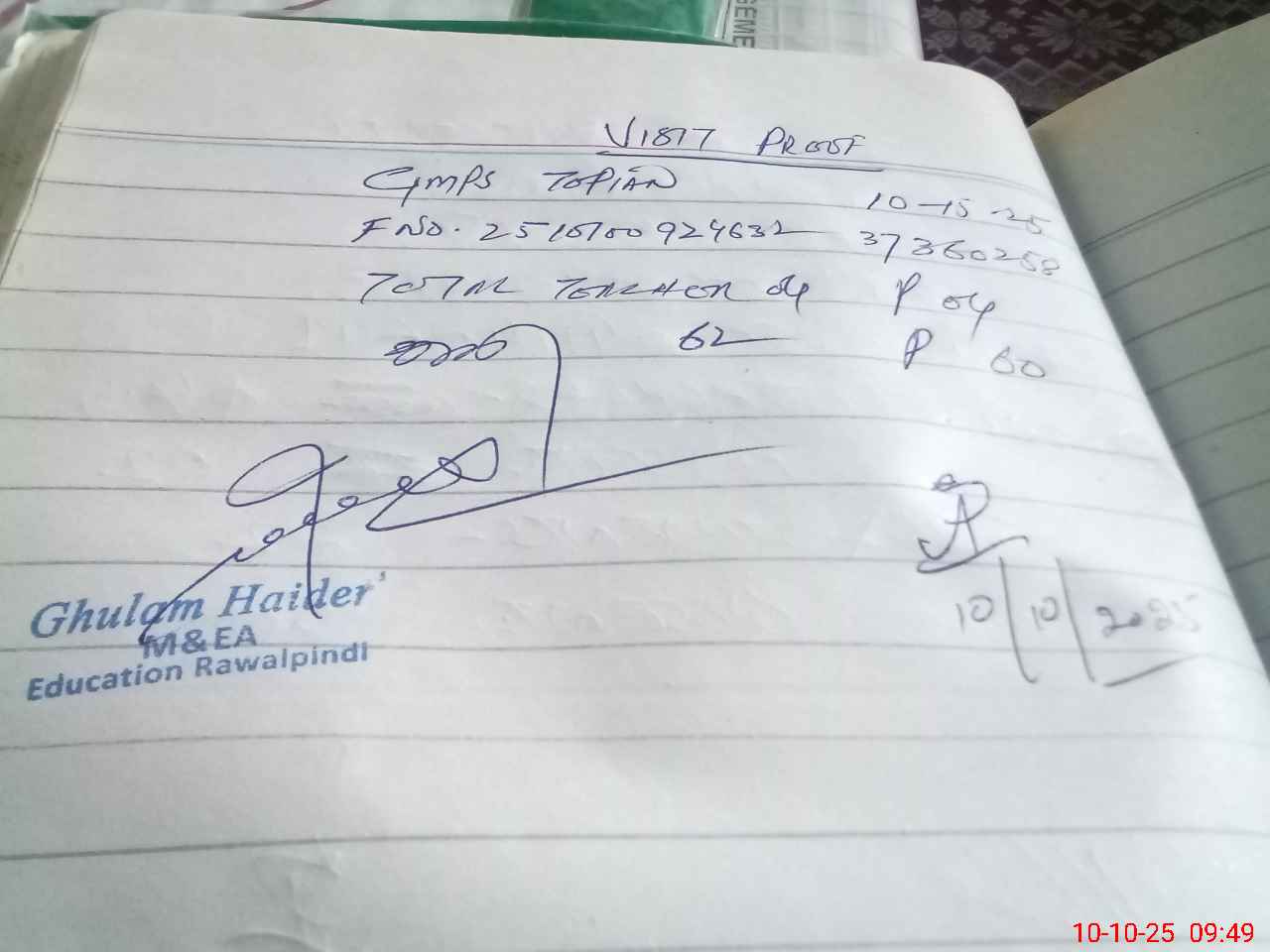 | Name: TE**** IS**** Designation: (School Headmaster's/Headmistress's) PST/PTC/JV Phone/Cell Number: 03**** |