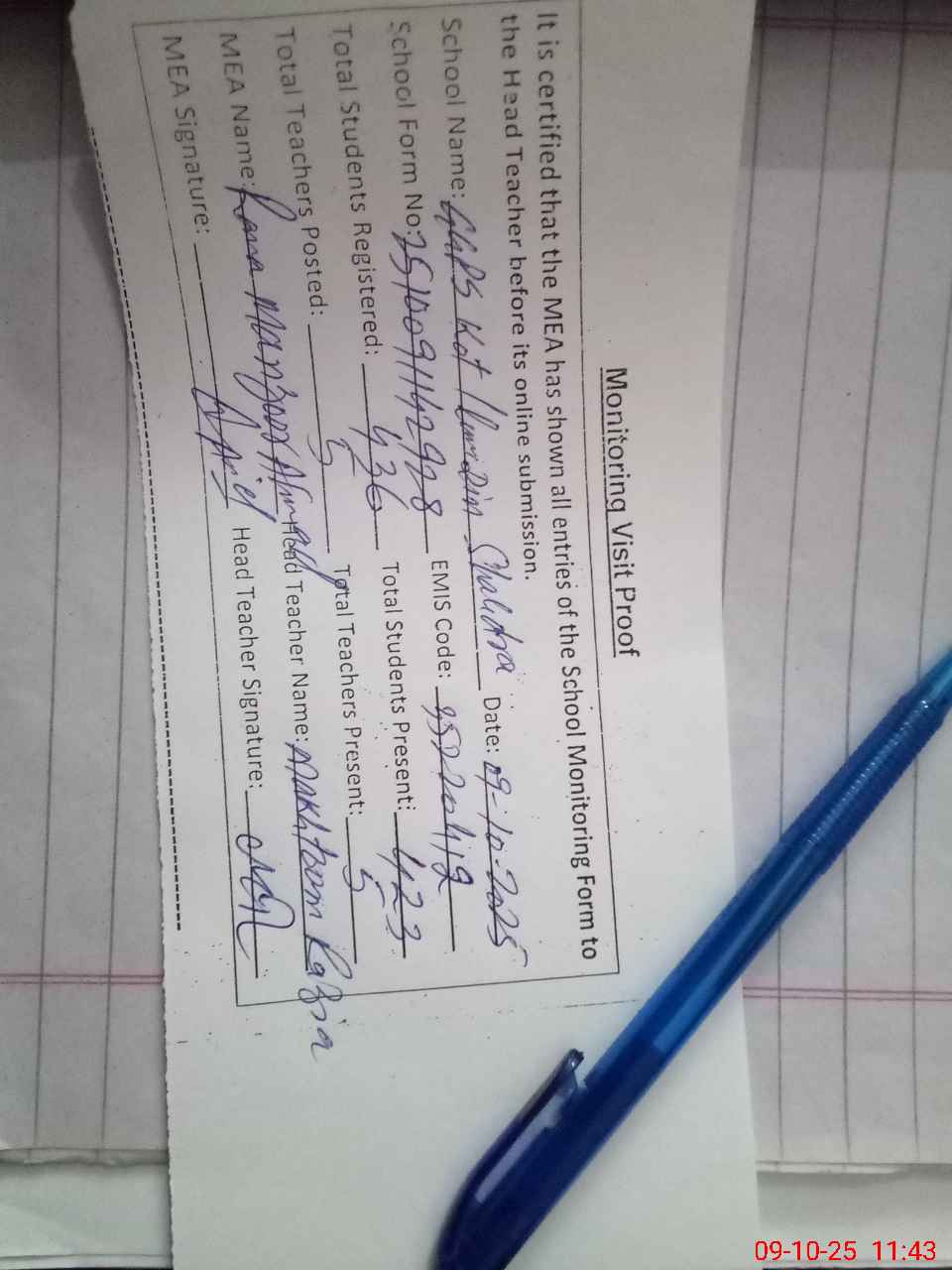 | EMIS Code: 35220412 | Name of School: GGPS KOT ILAM DIN SHAHDARA | |||