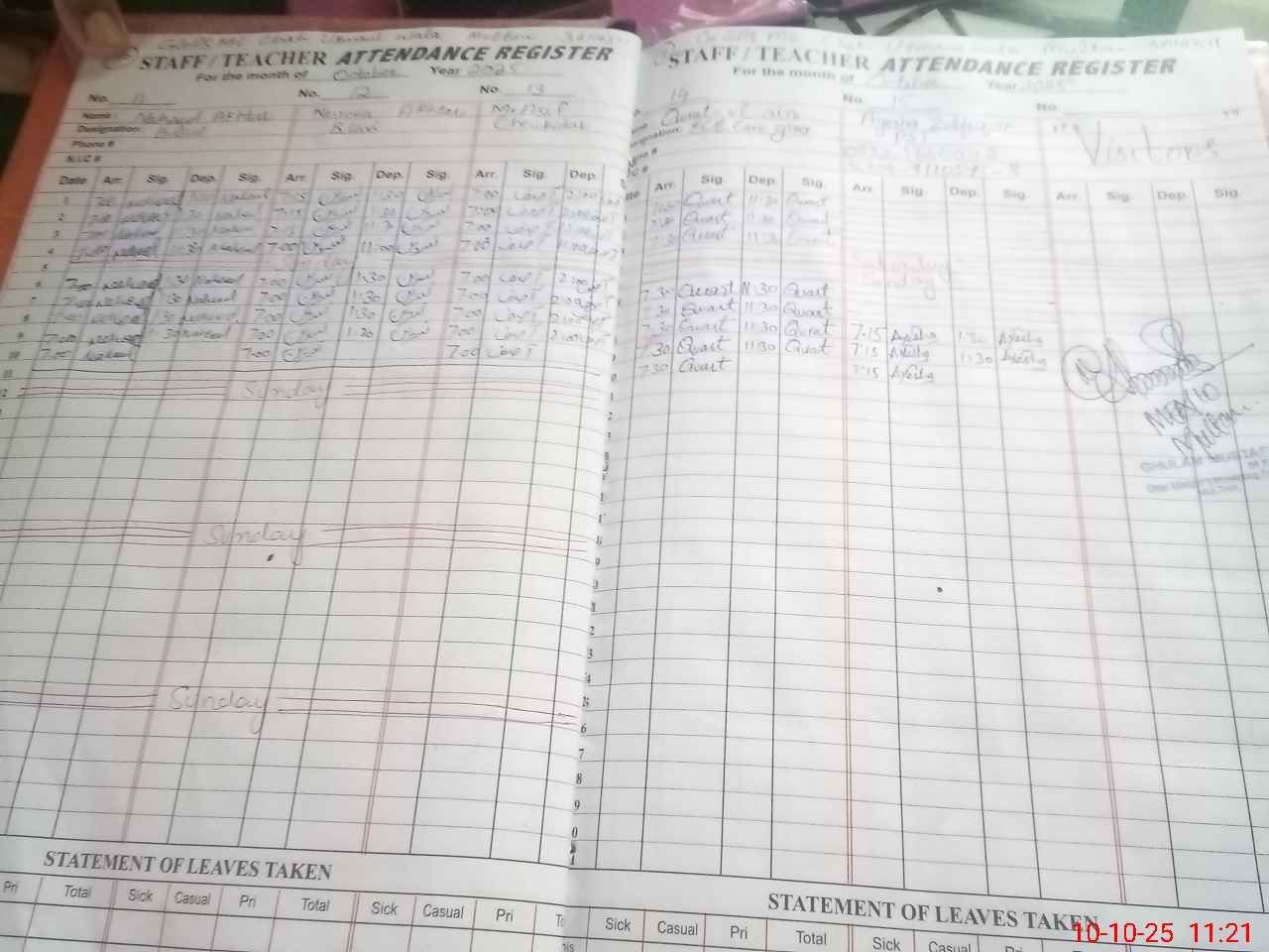 | Leave | Duty | Absent | Maternity | Medical | Ex- Pak |