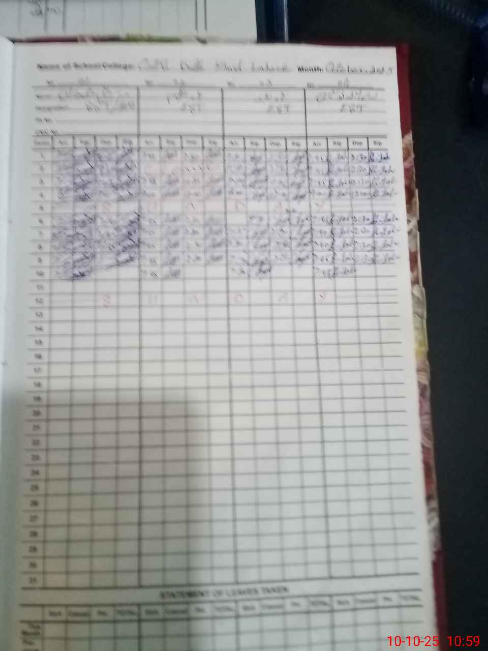 | No. of Students Present - Male | 0 | 0 | 53 | 65 | 45 | 26 | 71 | 29 | 56 | 42 | 37 | 424 | ||||