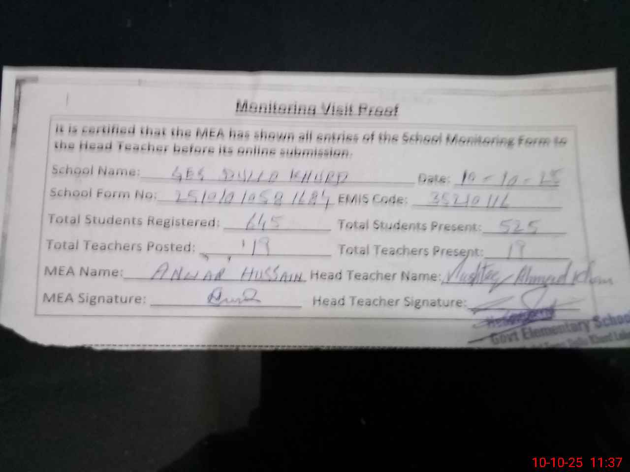 | Certified that this School was Inspected by the Undersigned MEA/DMO Today and the Information Stated Above is as Per Record. | |||||