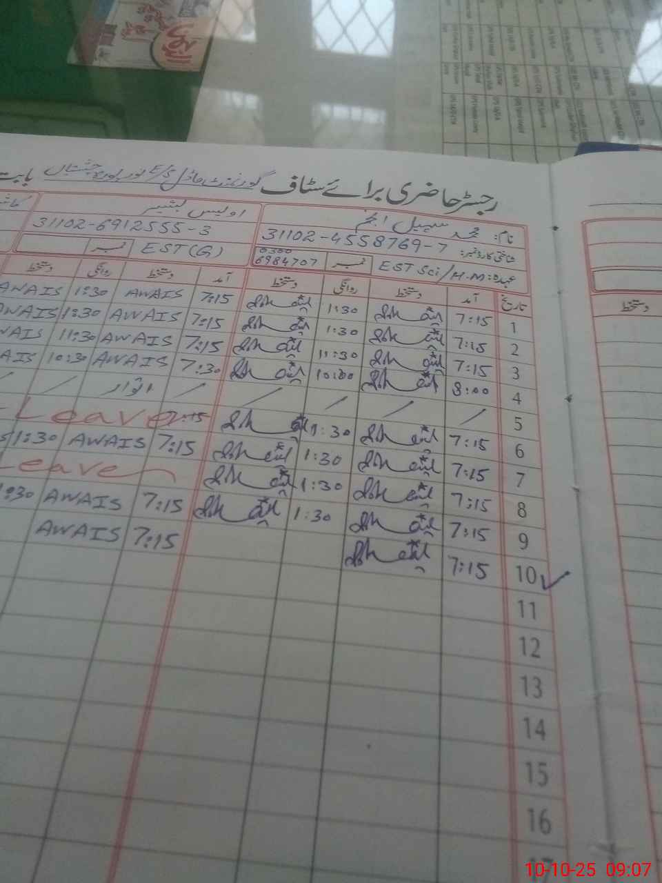 | CNIC | Full Name | Designation | R/C | Absence During Last Calender Month |