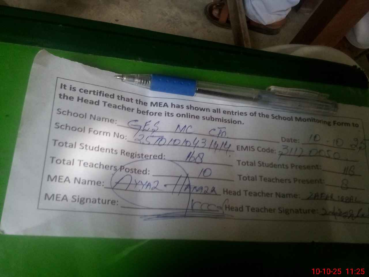 | EMIS Code: 31120050 | Name of School: GES MC CHISHTIAN | |||