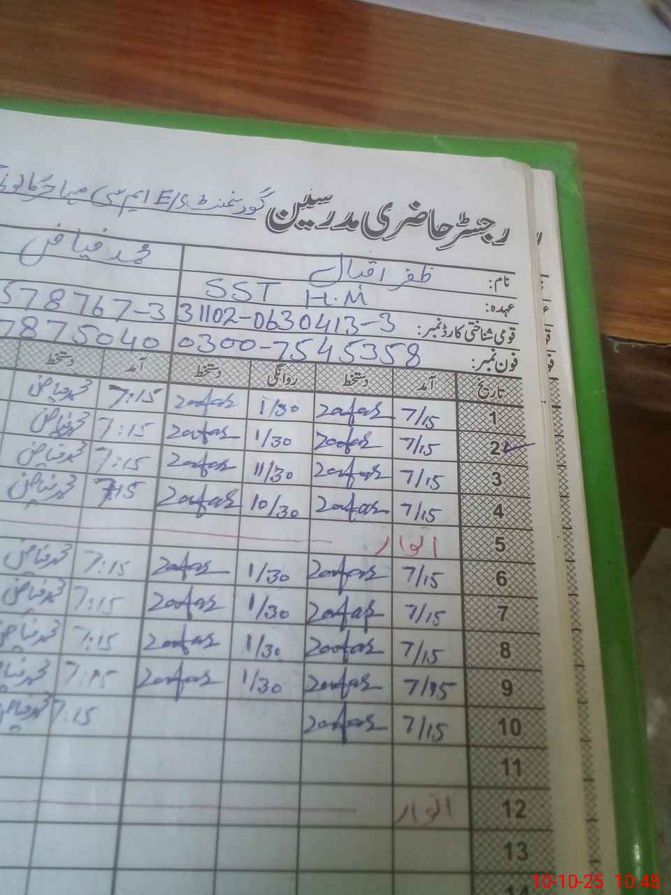 | Name: ZA**** IQ**** Designation: (School Headmaster's/Headmistress's) SST ARTS Phone/Cell Number: 03**** |