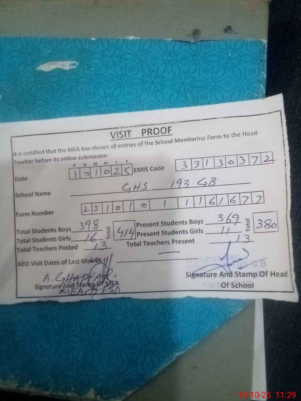 | EMIS Code: 33130372 | Name of School: GHS CHAK 193 GB SHUMALI SAMUNDRI FSD | |||