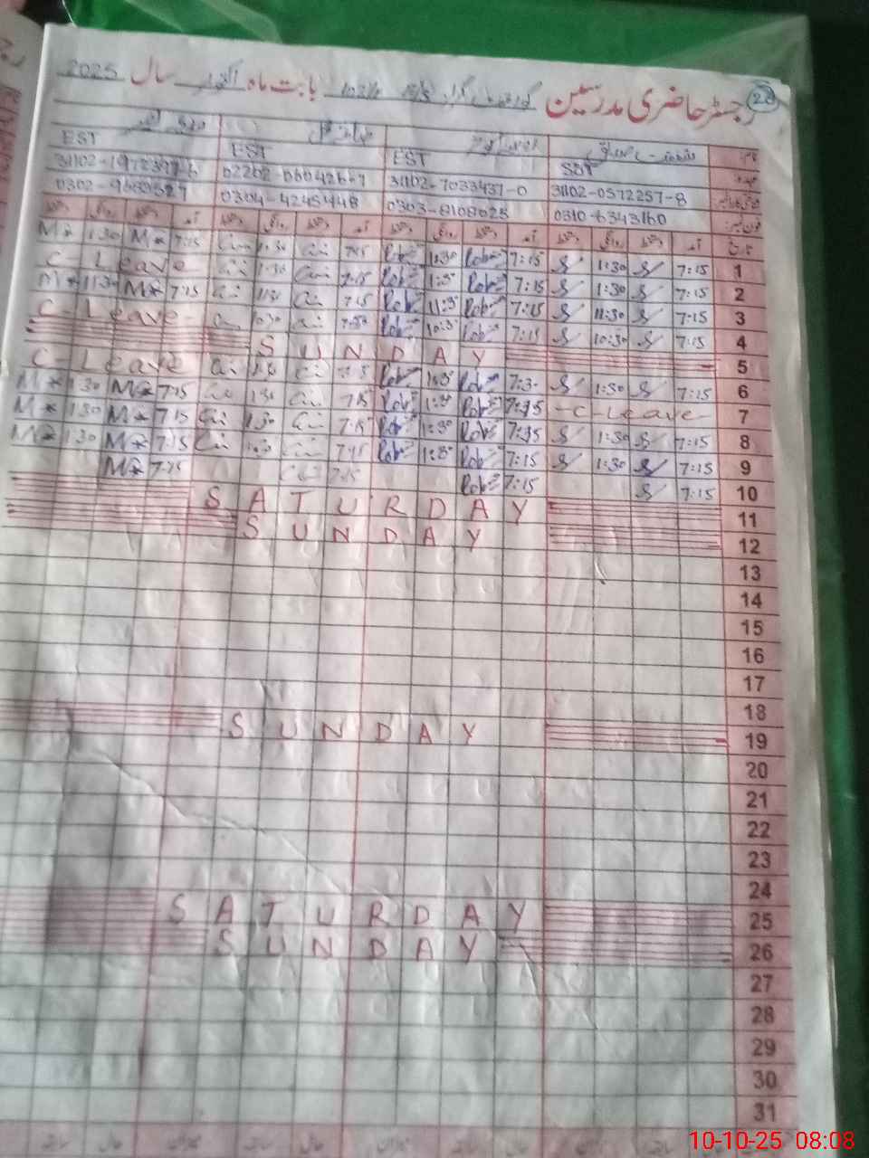 | CNIC | Full Name | Designation | R/C | Absence During Last Calender Month |
