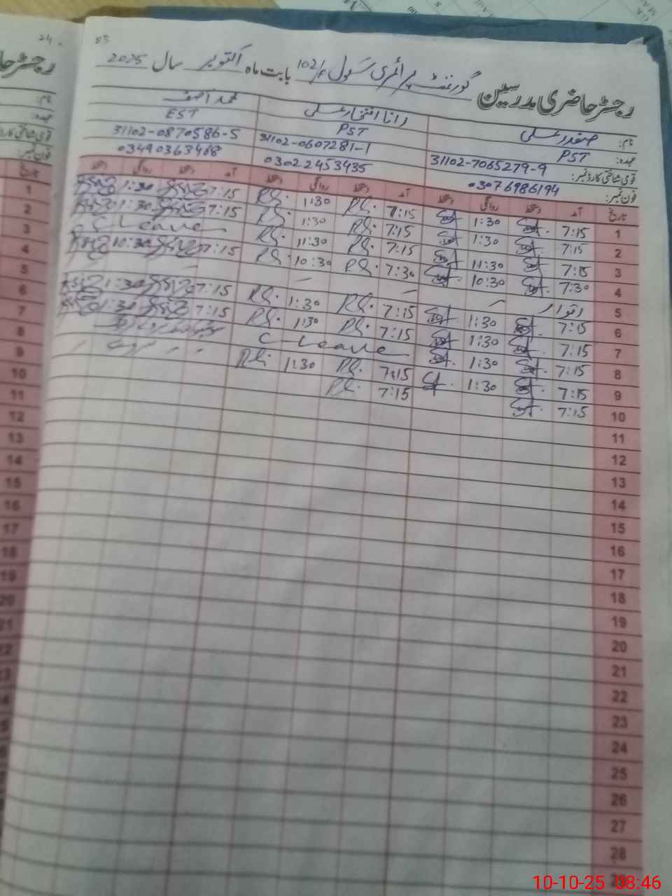 | Name: SA**** AL**** Designation: (School Headmaster's/Headmistress's) PST Phone/Cell Number: 03**** |
