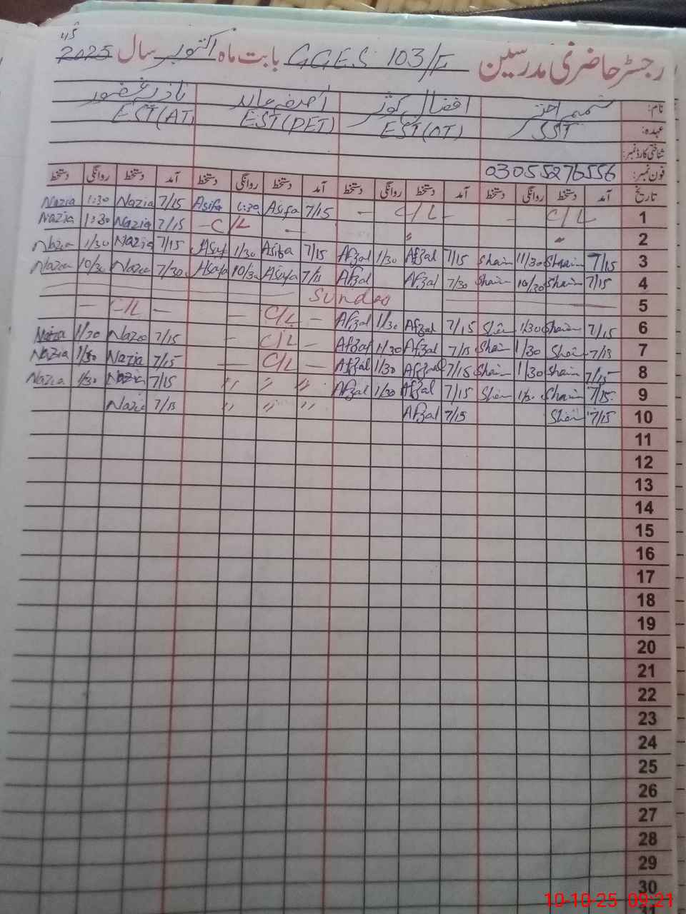 | Name: SH**** AK**** Designation: (School Headmaster's/Headmistress's) SST ARTS Phone/Cell Number: 03**** |