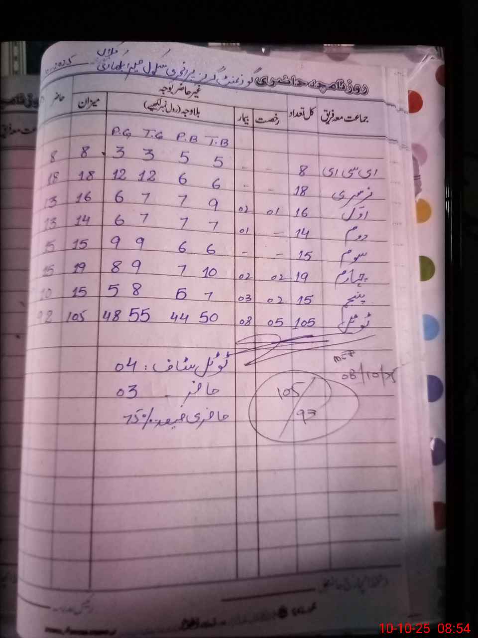 | No. of Students Present - Female | 3 | 0 | 12 | 6 | 6 | 9 | 8 | 5 | 49 | |||||||