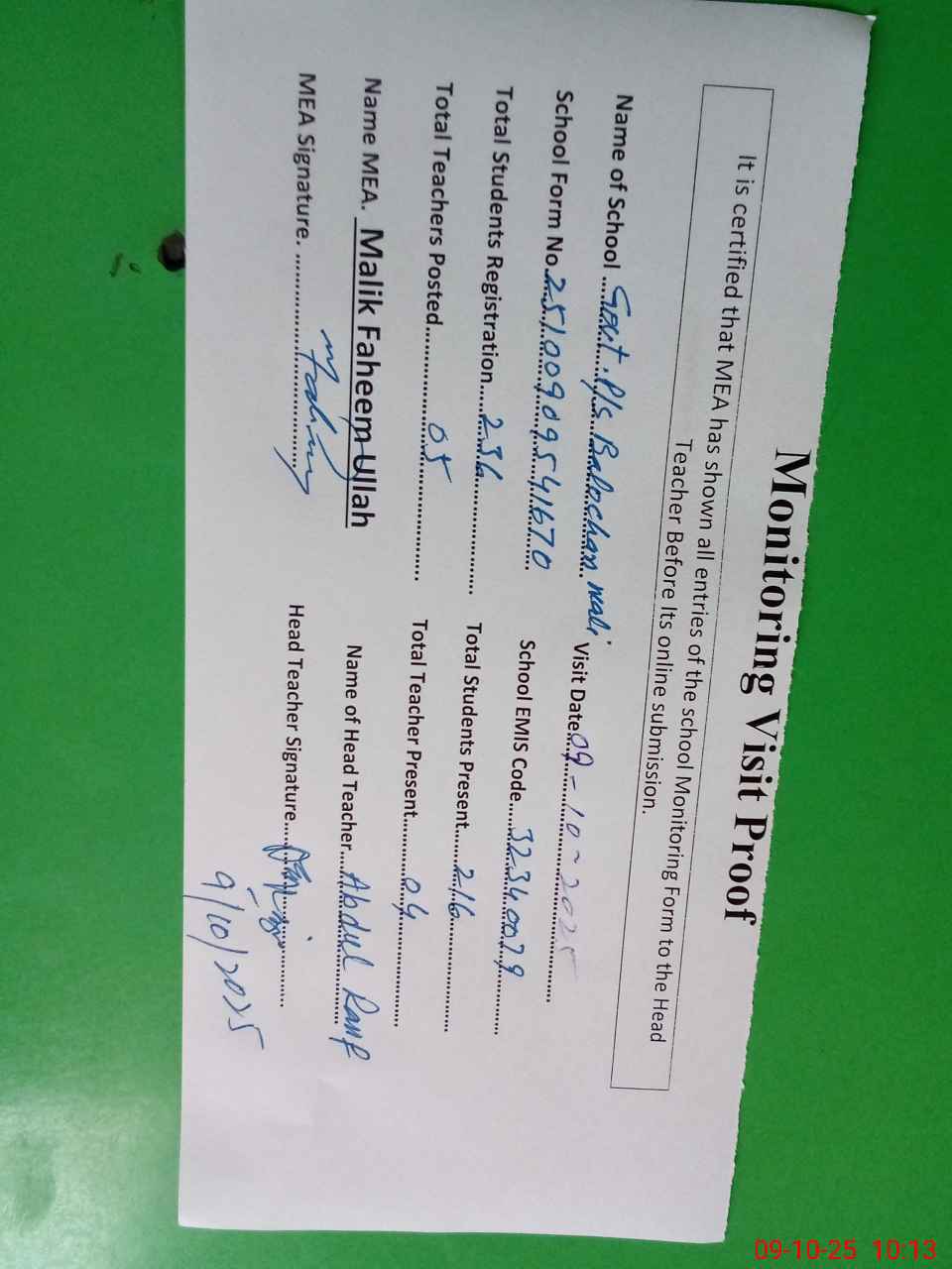 | EMIS Code: 32340079 | Name of School: GPS BALOCHAN WALI | |||