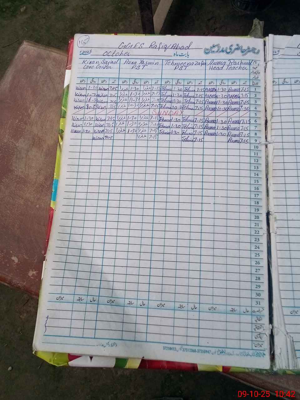 | CNIC | Full Name | Designation | R/C | Absence During Last Calender Month |