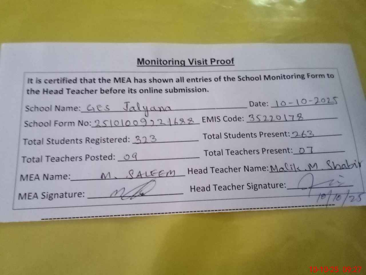 | EMIS Code: 35220178 | Name of School: GES JALYANA | |||