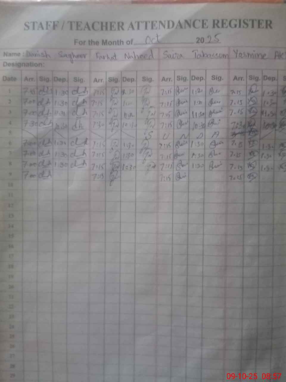 | Monitoring Date: 09-10-2025 | Start Time: 09-10-2025 08:33 AM | End Time: 09-10-2025 09:05 AM | Name of MEA: Ra**** Ra**** Al**** | |