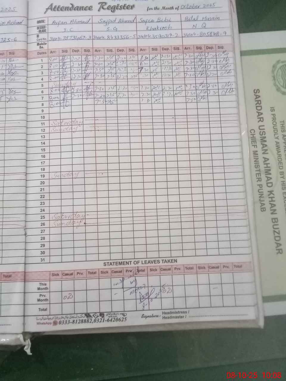 | Name: Sh**** As**** Designation: (School Headmaster's/Headmistress's) Inch Phone/Cell Number: 03**** |