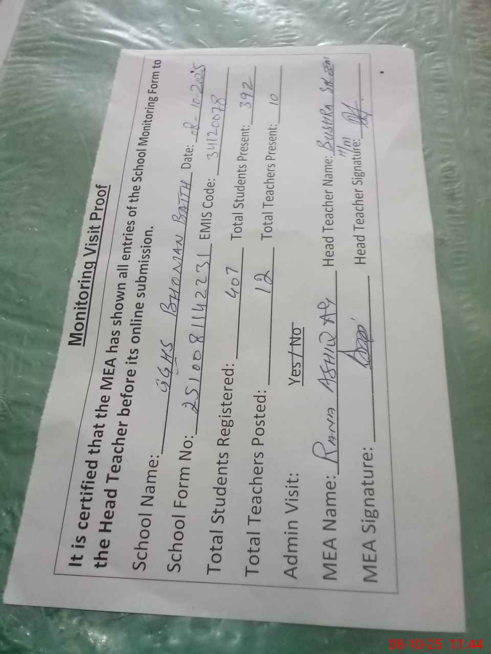 | EMIS Code: 34120078 | Name of School: GGHS BHOMAN BATH | |||