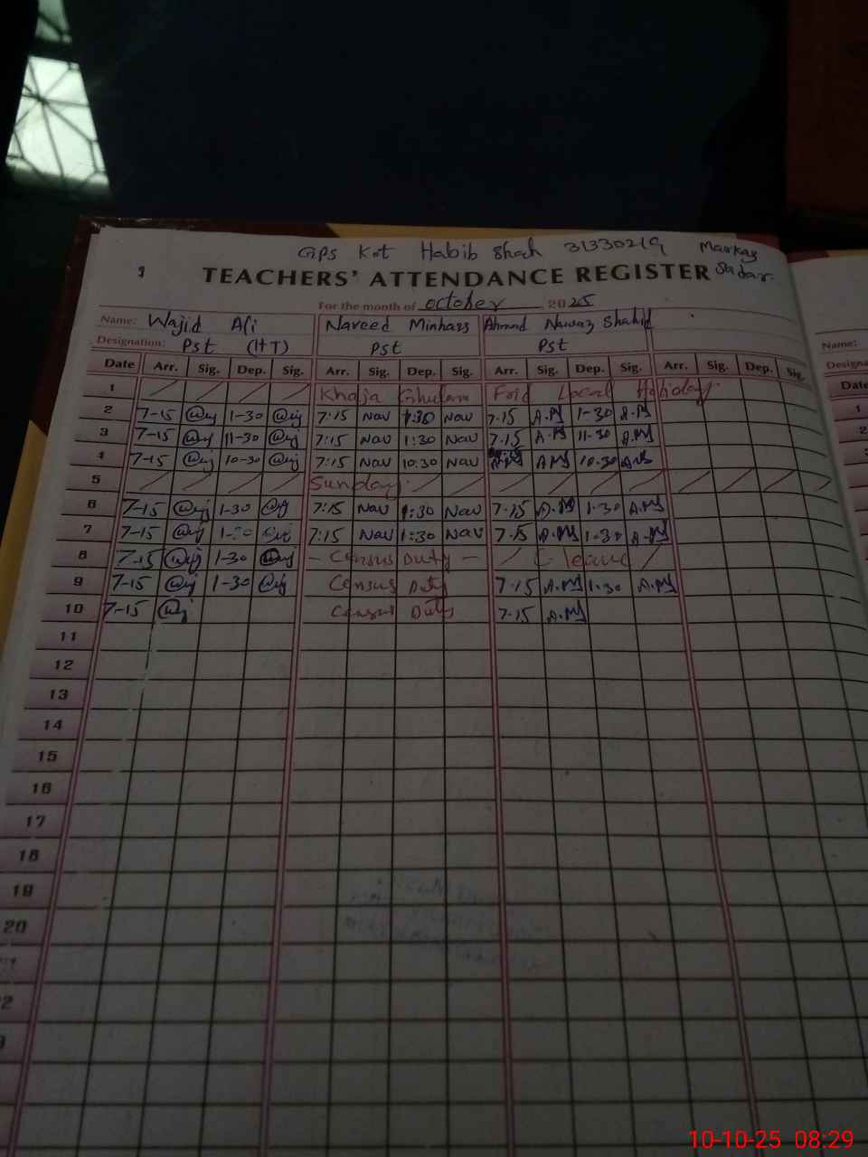 | Name: Wa**** Al**** Designation: (School Headmaster's/Headmistress's) P S T Phone/Cell Number: 03**** |