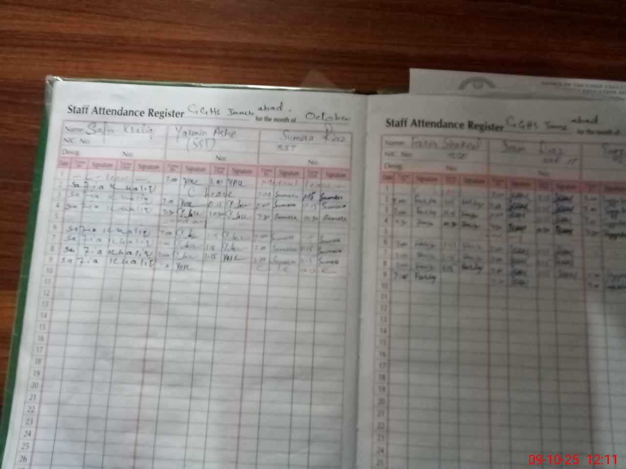 | CNIC | Full Name | Designation | R/C | Absence During Last Calender Month |