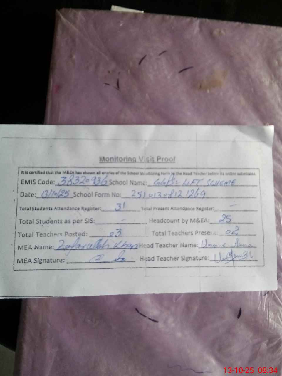 | EMIS Code: 38320936 | Name of School: GGPS LIFT SCHEME SAMAND WALA | |||