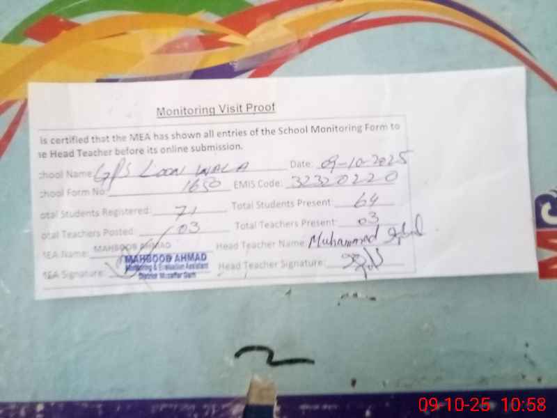 | EMIS Code: 32320220 | Name of School: GPS LOON WALA | |||