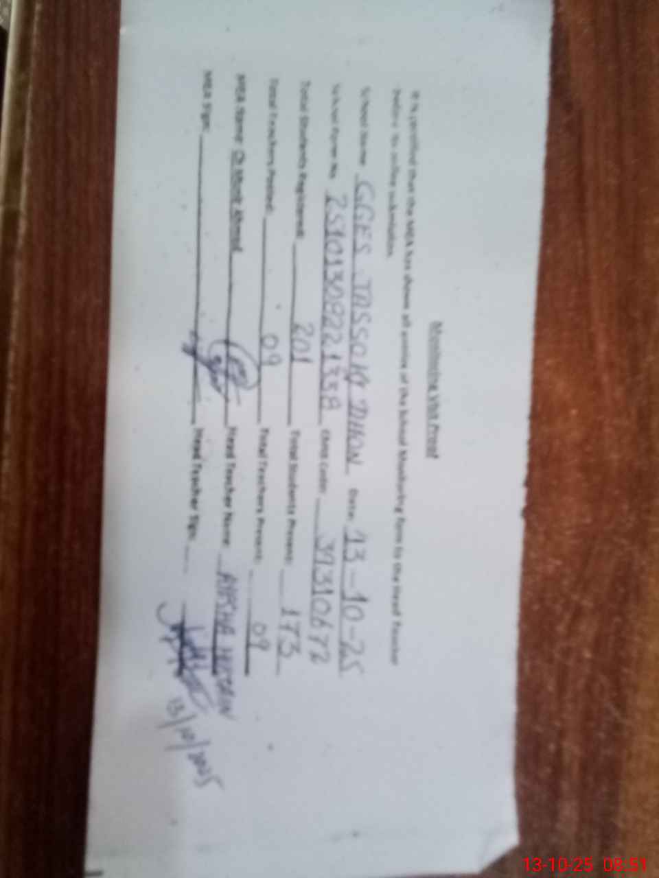 | Monitoring Date: 13-10-2025 | Start Time: 13-10-2025 08:22 AM | End Time: 13-10-2025 08:51 AM | Name of MEA: MU**** AH**** | |