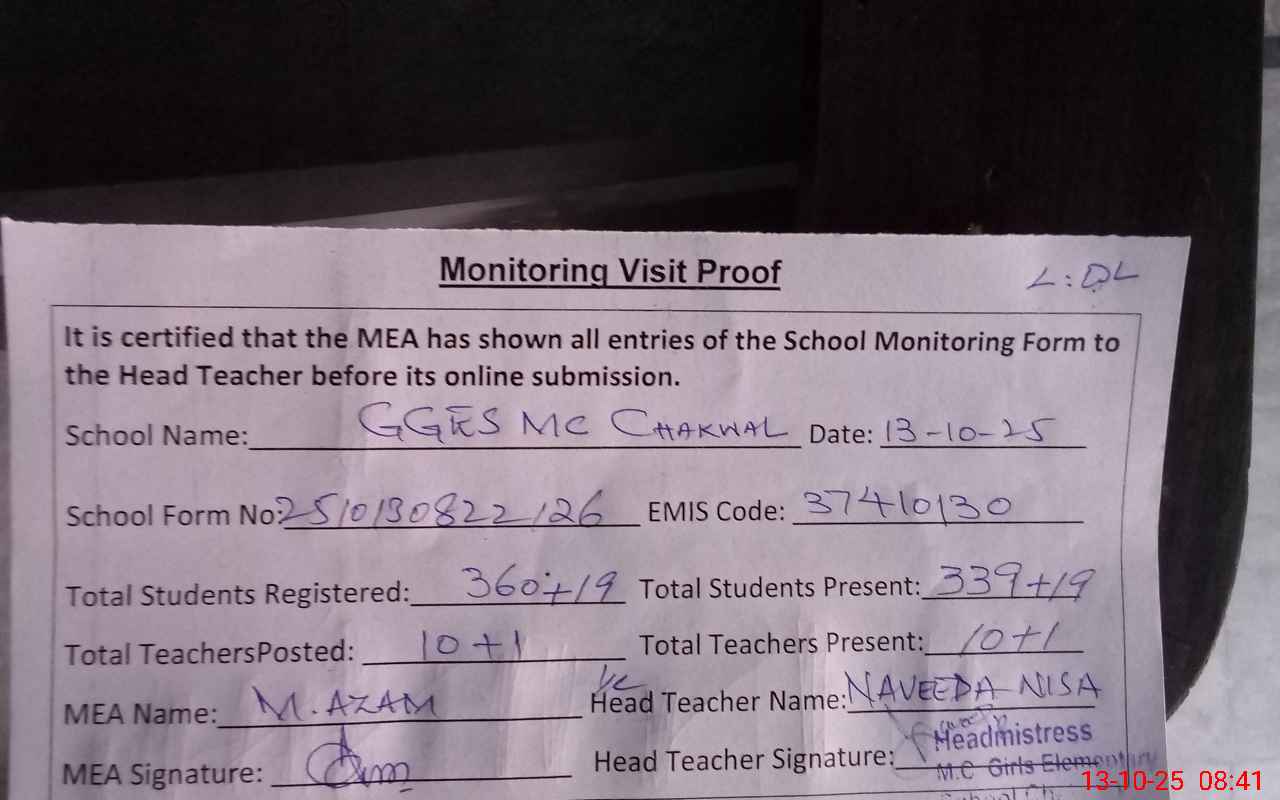 | EMIS Code: 37410130 | Name of School: GGES MC CHAKWAL | |||