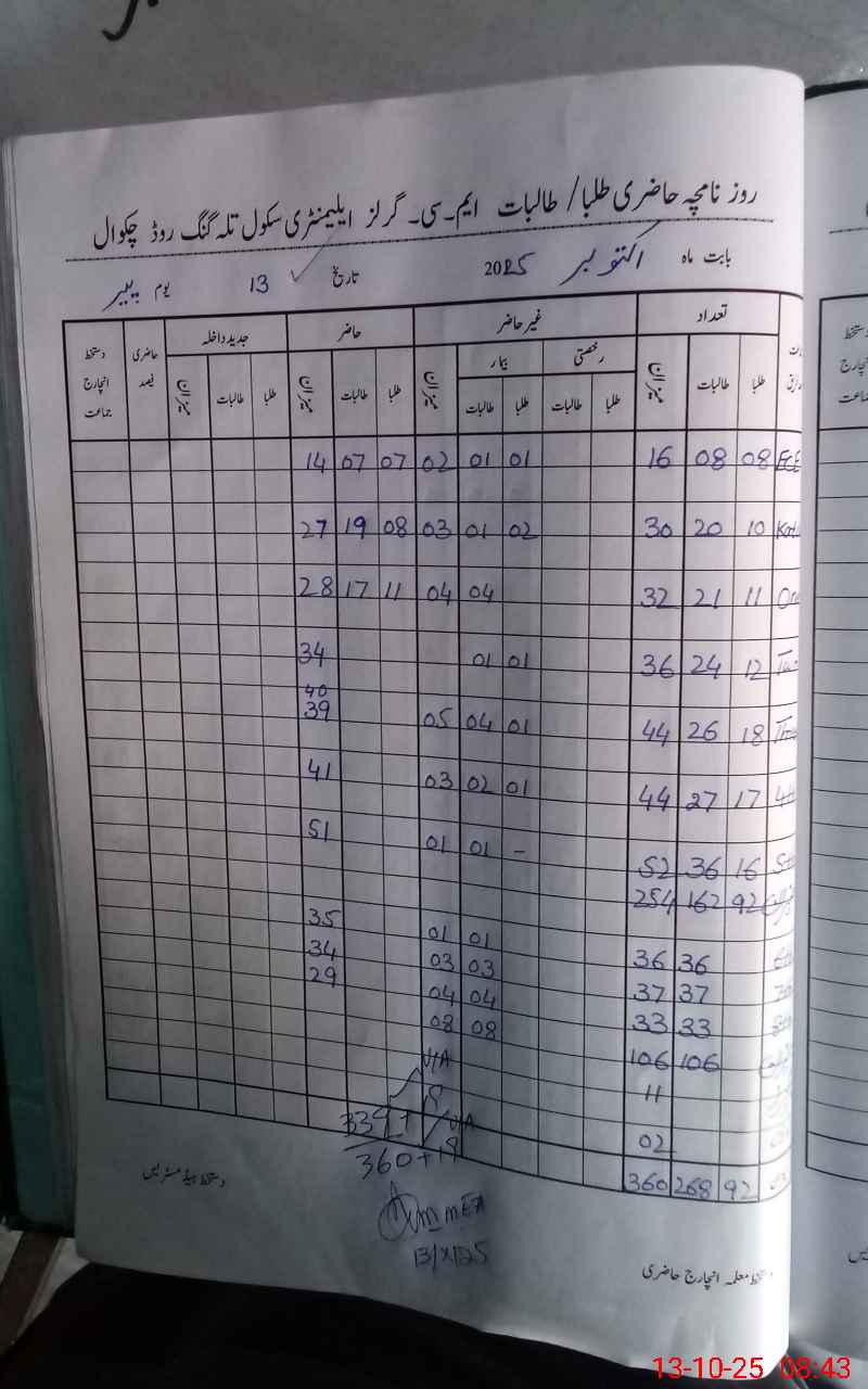 | District: CHAKWAL | Tehsil: CHAKWAL | Markaz: CHAKWAL1-FEMALE | Level: Middle | |