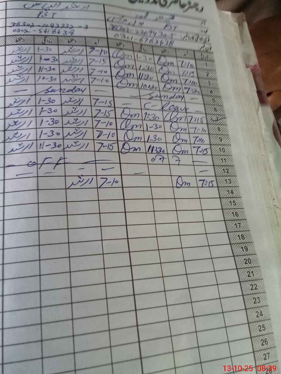 | CNIC | Full Name | Designation | R/C | Absence During Last Calender Month |
