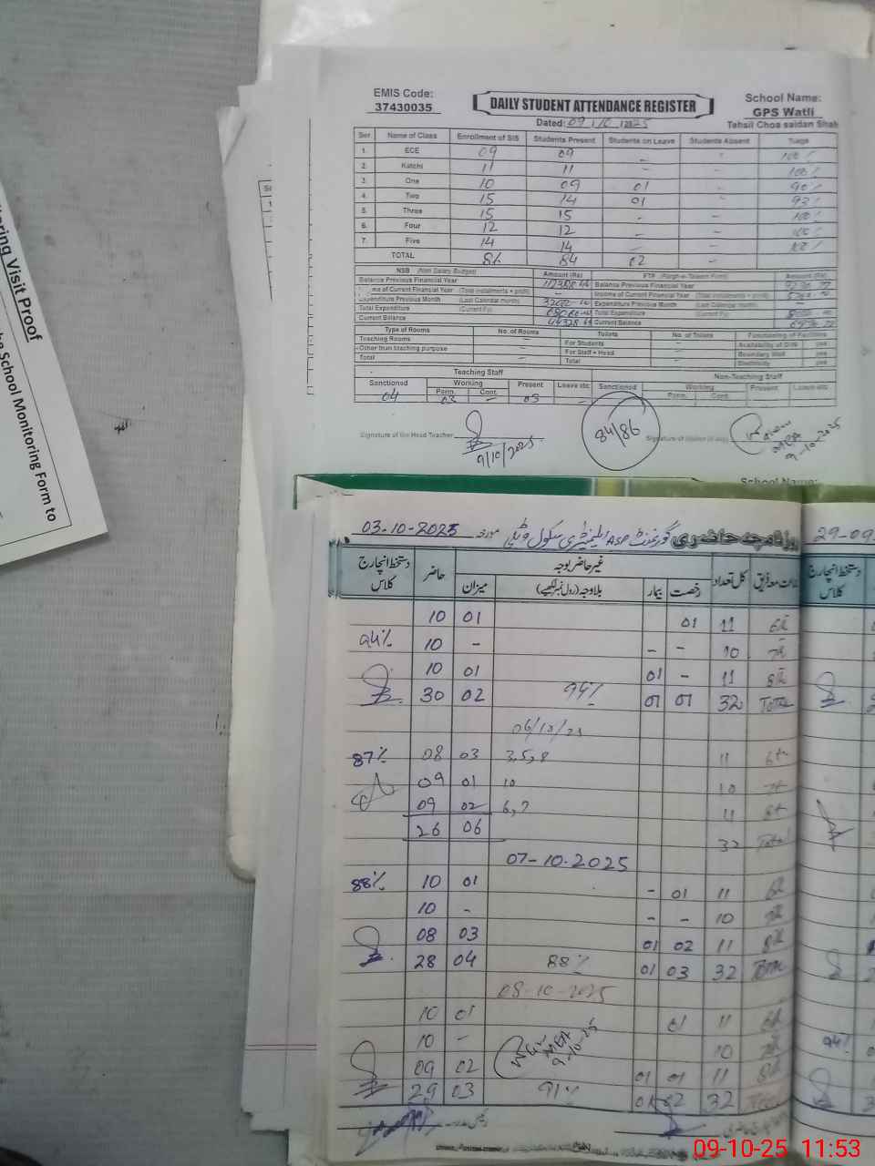 | Attendance Register | Head Teacher | MEA with School | Visit Proof |
