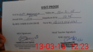 | School Visited by School Health & Nutrition Supervisor (No. of Visits) | 1 | Name1: | Javed Iqbal | Name2: | |