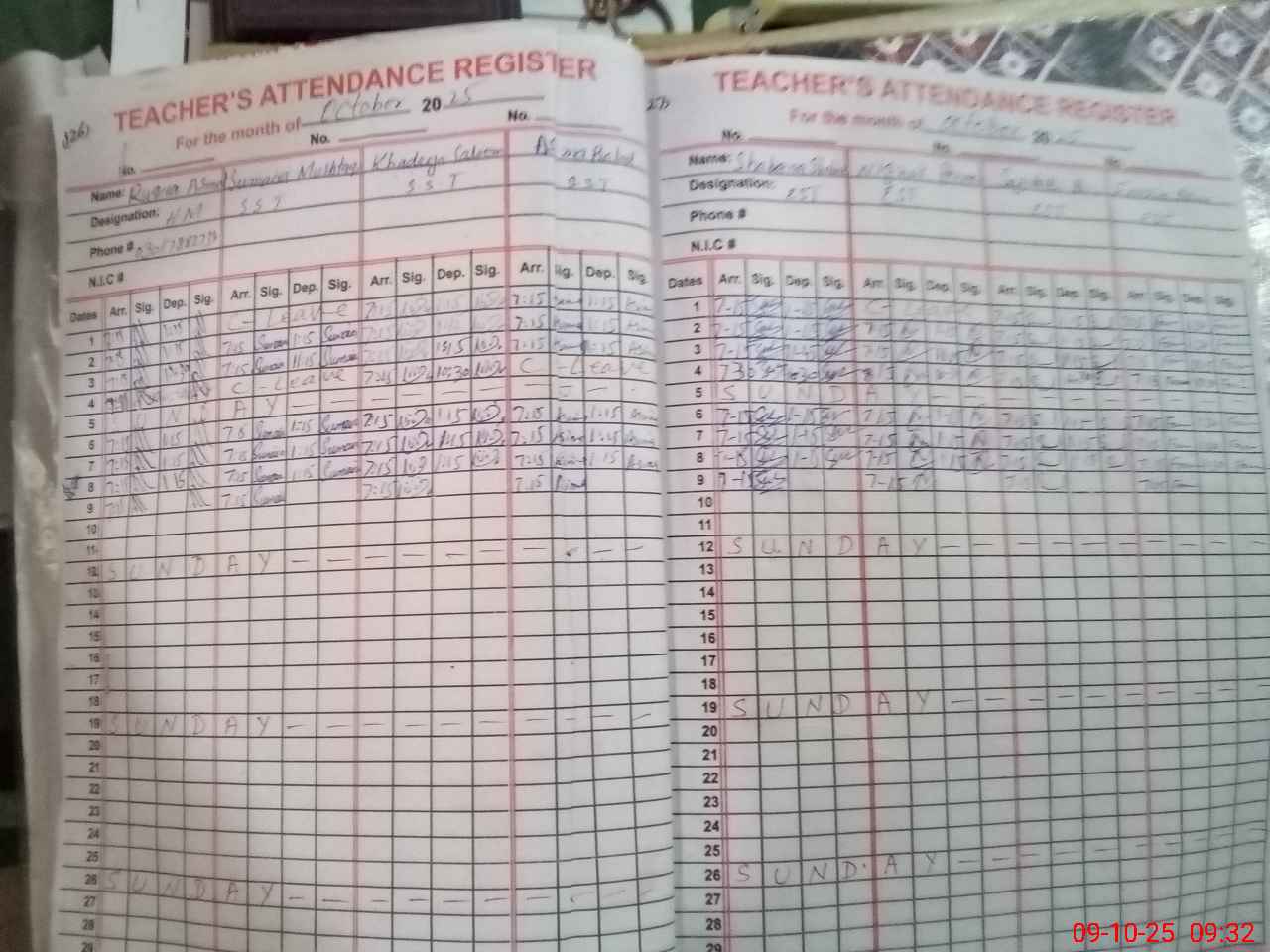 | CNIC | Full Name | Designation | R/C | Absence During Last Calender Month |