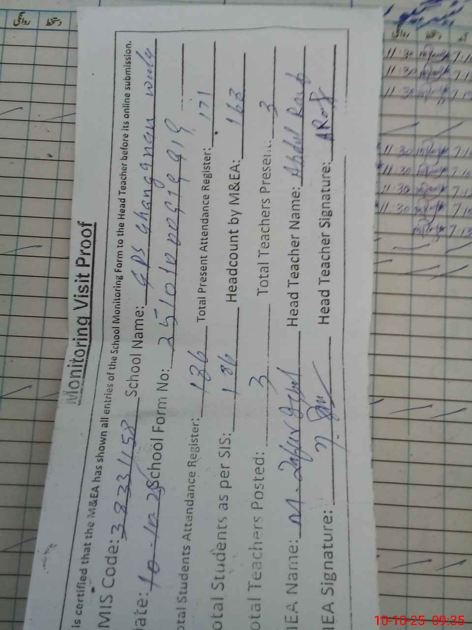 | EMIS Code: 38331158 | Name of School: GPS GHANGANAN WALI PIPLAN | |||