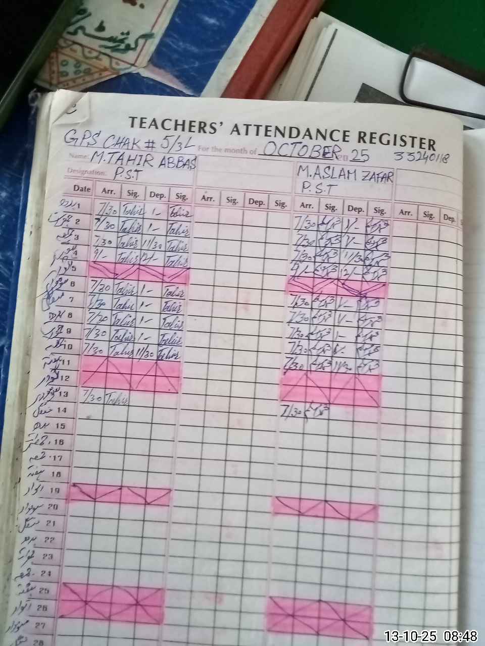 | Name: MTA**** AB**** Designation: (School Headmaster's/Headmistress's) PST Phone/Cell Number: 03**** |