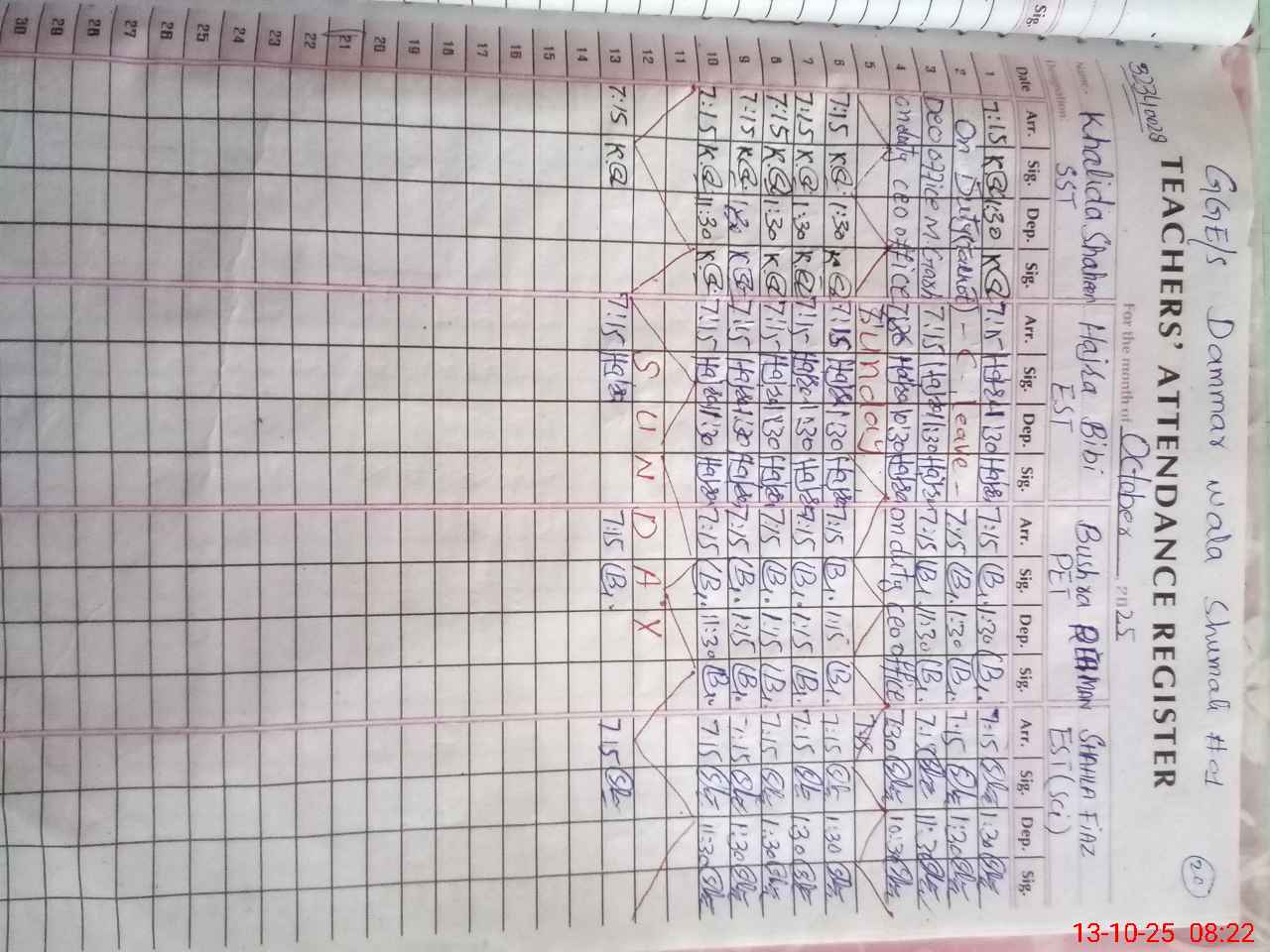| Name: Kh**** Sh**** Designation: (School Headmaster's/Headmistress's) Sst Phone/Cell Number: 03**** |