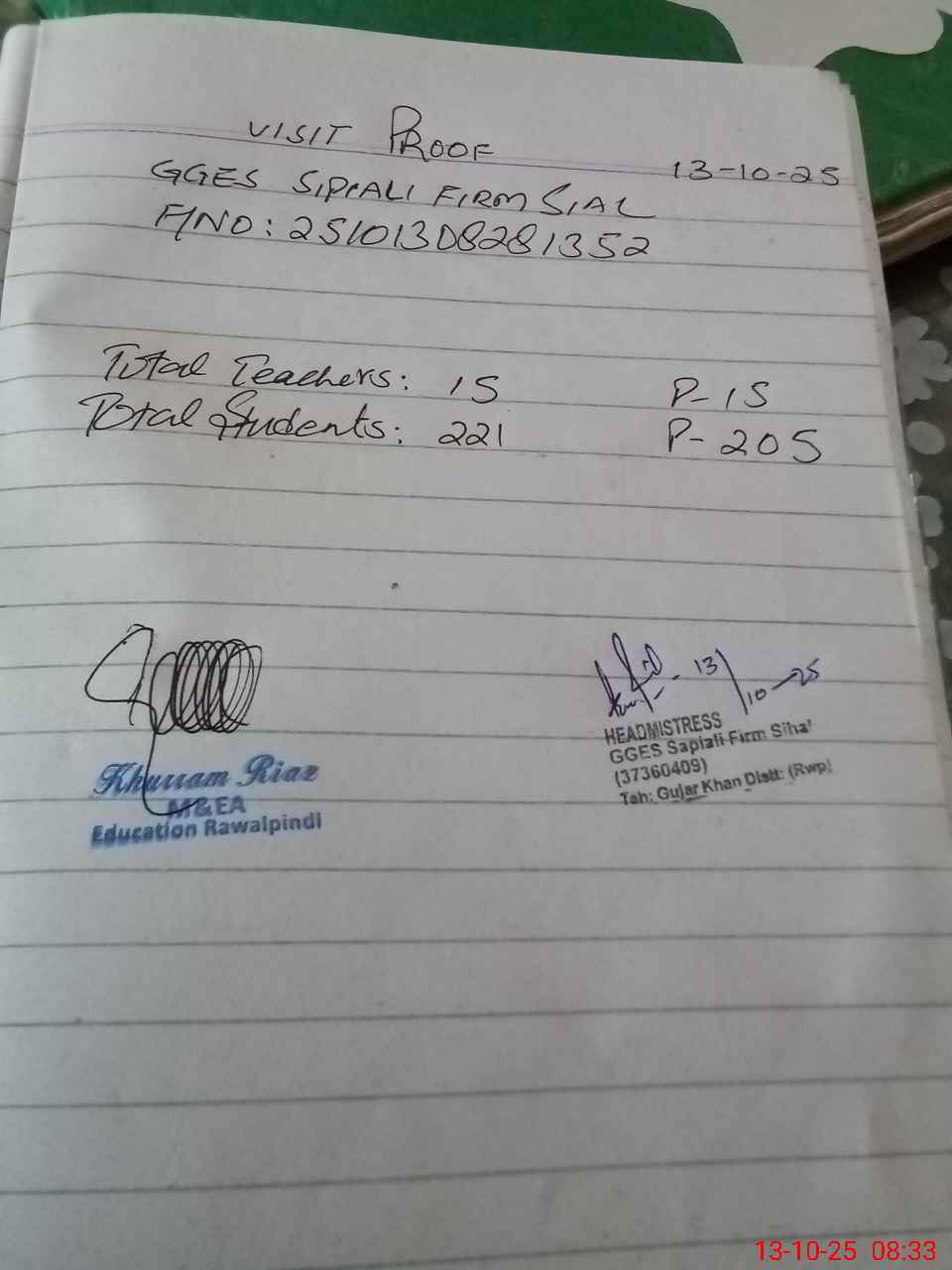 | EMIS Code: 37360409 | Name of School: GGES SAPIALI FIRM SIAL | |||