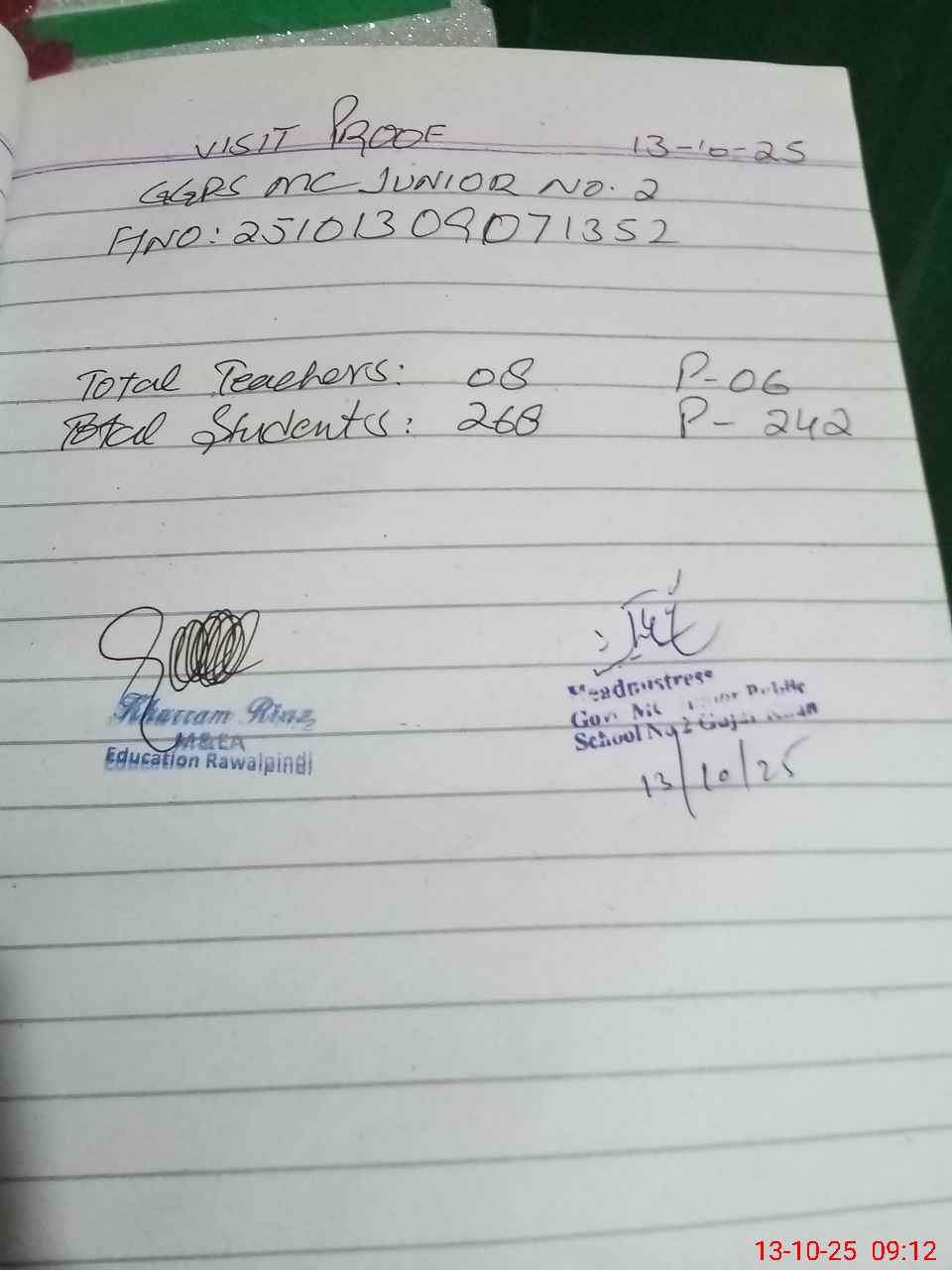 | EMIS Code: 37360146 | Name of School: GGPS MC JUNIOR PUBLIC NO. 2 GUJAR KHAN | |||