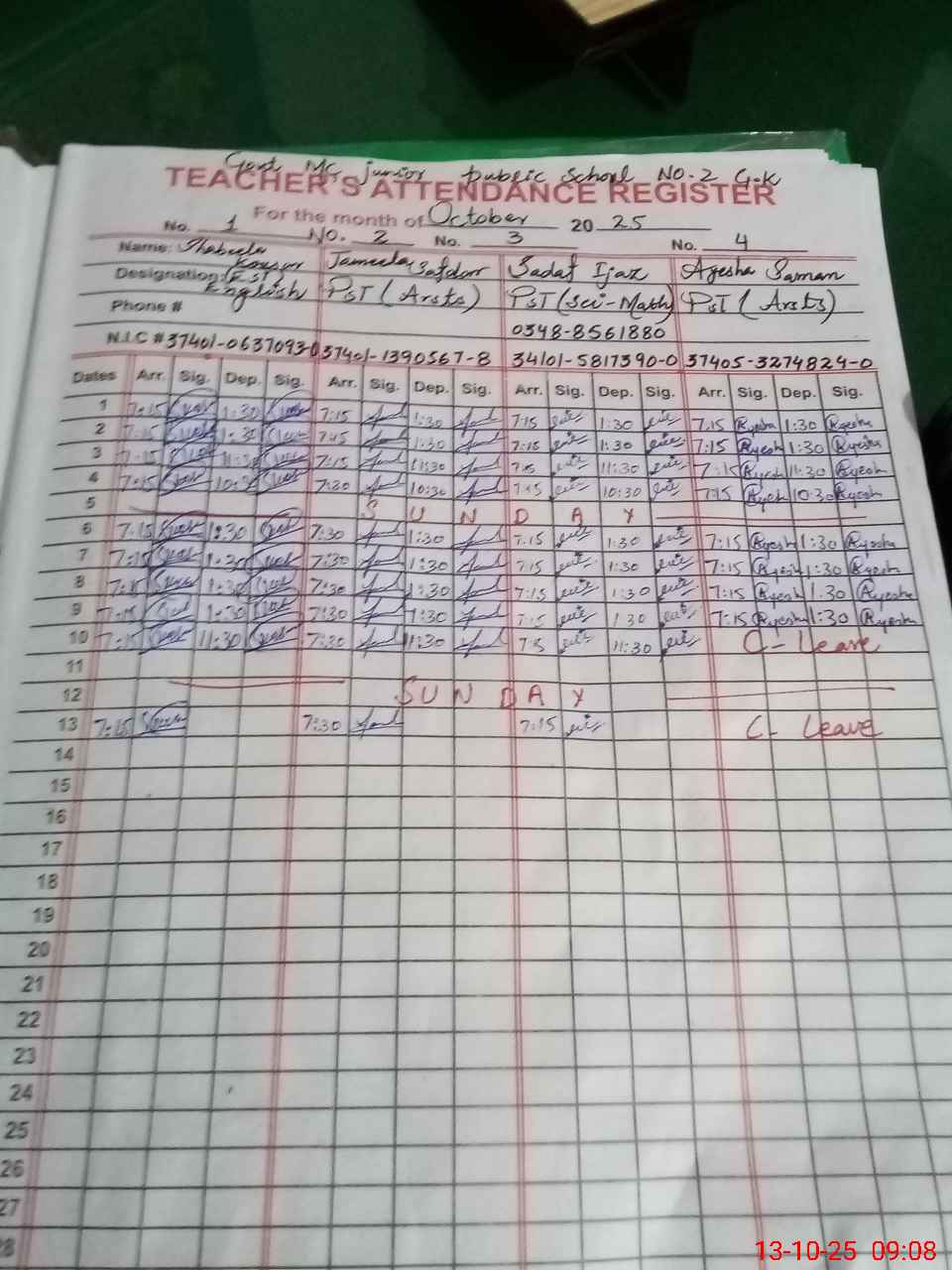 | 37**** | Ay**** Sa**** | PST | Regular | 0 | 0 | 0 | 0 | 0 | 0 | 0 | 0 | 0 | Absent (Un-Authorized) |