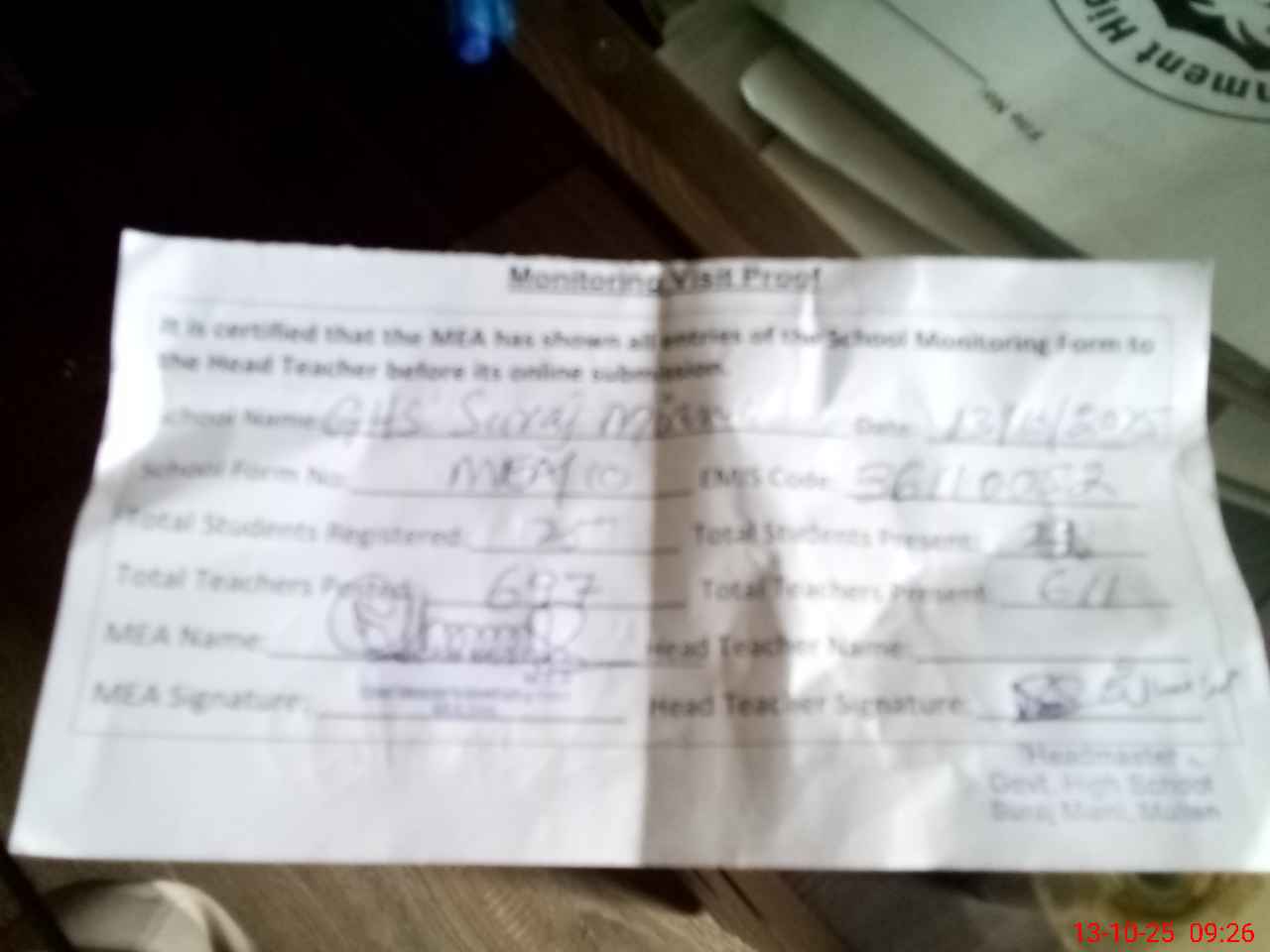 | EMIS Code: 36110052 | Name of School: GHS SURAJ MIANI SURAJ MIANI | |||