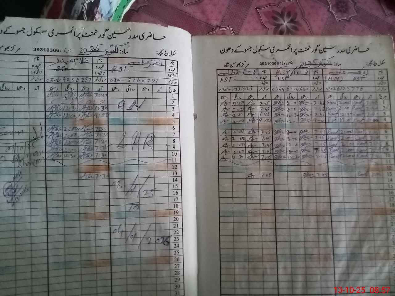 | Name: RA**** AL**** Designation: (School Headmaster's/Headmistress's) PST Phone/Cell Number: 03**** |