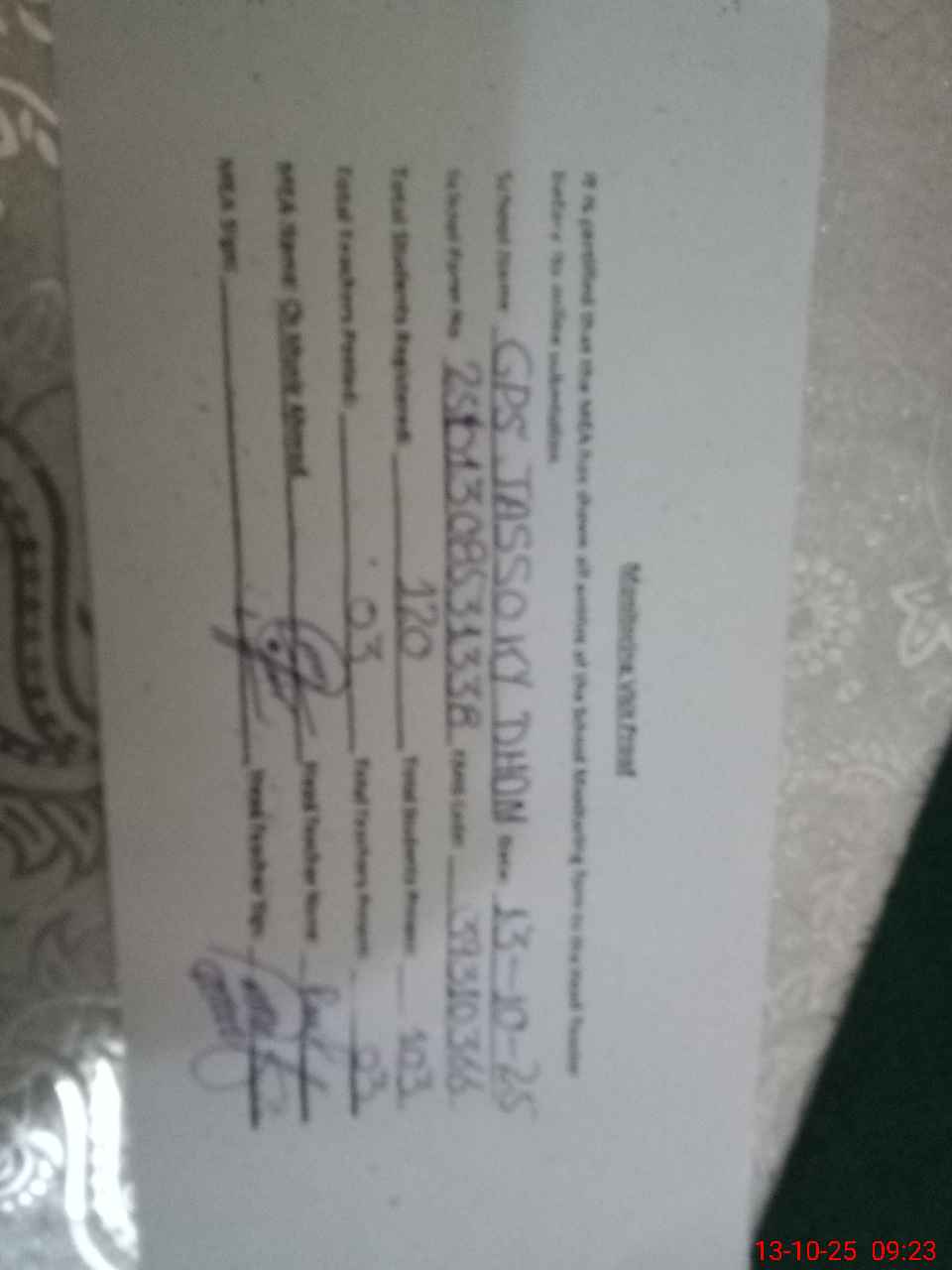 | Monitoring Date: 13-10-2025 | Start Time: 13-10-2025 08:53 AM | End Time: 13-10-2025 09:24 AM | Name of MEA: MU**** AH**** | |