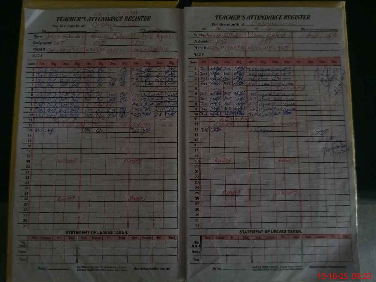 | Name: SH**** BA**** Designation: (School Headmaster's/Headmistress's) PST Phone/Cell Number: 03**** |