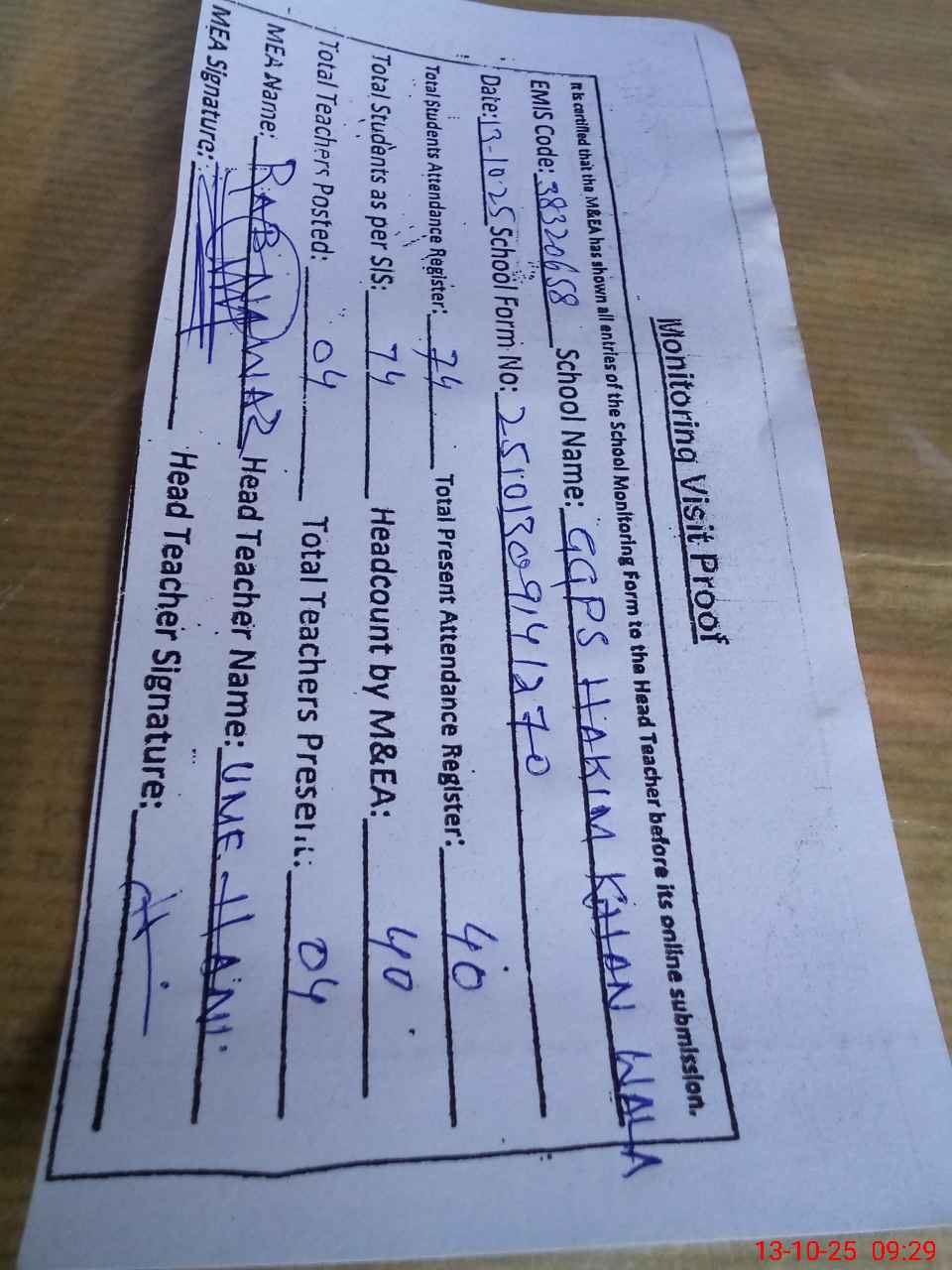 | EMIS Code: 38320658 | Name of School: GGPS HAKIM KHAN WALA | |||