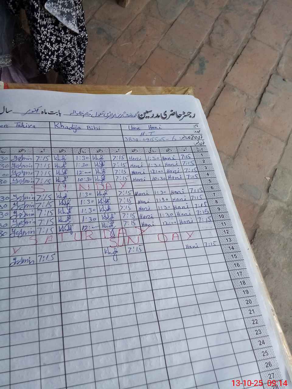 | Name: Um**** Ha**** Designation: (School Headmaster's/Headmistress's) PST Phone/Cell Number: 03**** |